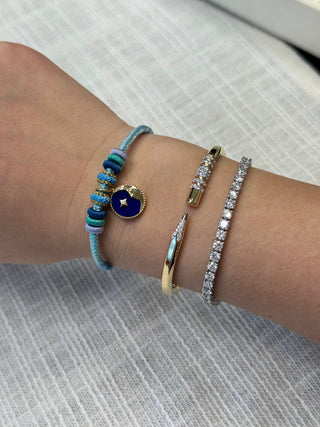 Enjoy a complimentary multi-color silk cord bracelet with every charm or pendant purchase — a playful start to your stack.