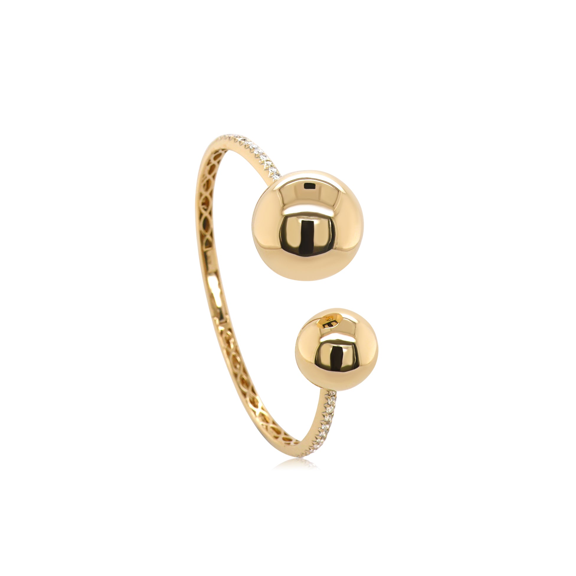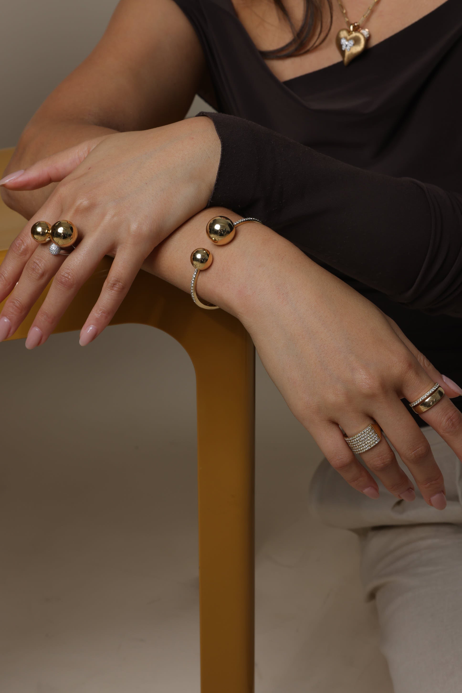 A study in balance — the Sphere Bangle plays with symmetry and flow, golden orbs set in perfect proportion. A bold yet wearable piece that feels both modern and timeless.