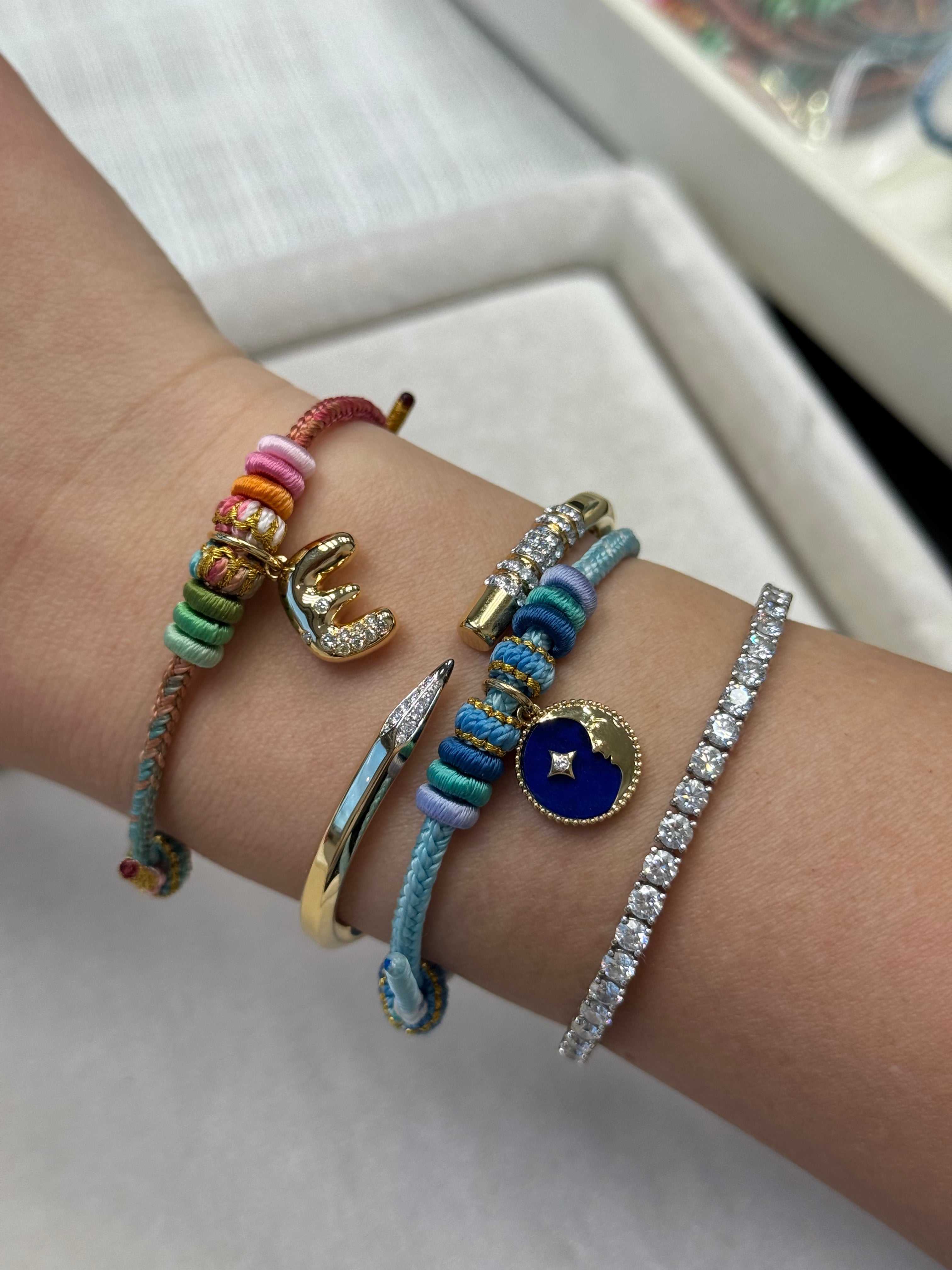 A playful take on classic initials — bold bubble letters with a dip of diamonds. The perfect mix of fun and fine, made to be worn your way.