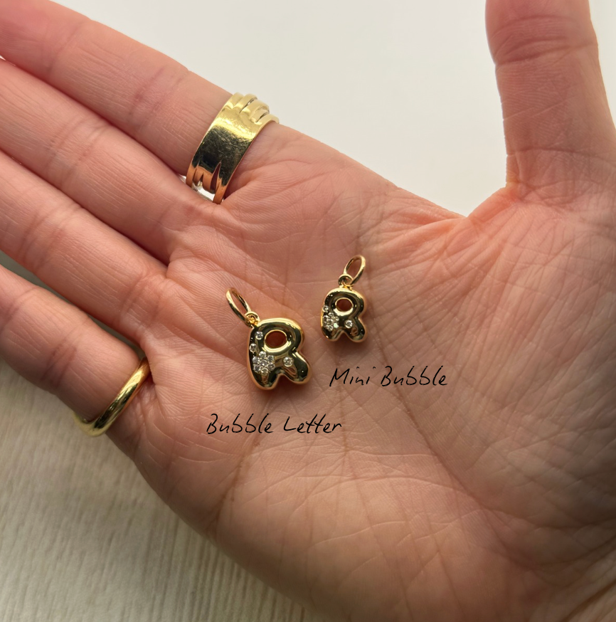 - Mini Bubble Letter Charm: 10mm